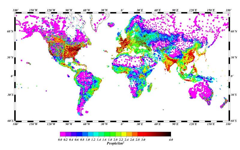 В общемировом масштабе плотность население земли выглядит следующим образом. Карта National Geographic