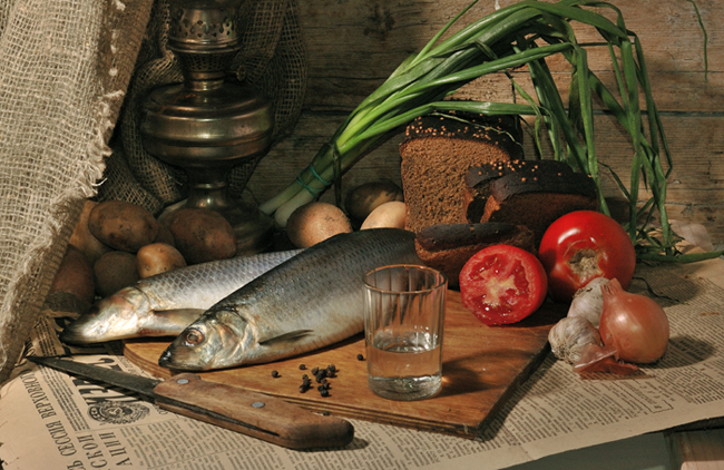 Только в натюрморт нуна ещё селёдочки бы подложить, маловато на такое количество хлеба и картошки.Тем более, что стопка явно за кадром.