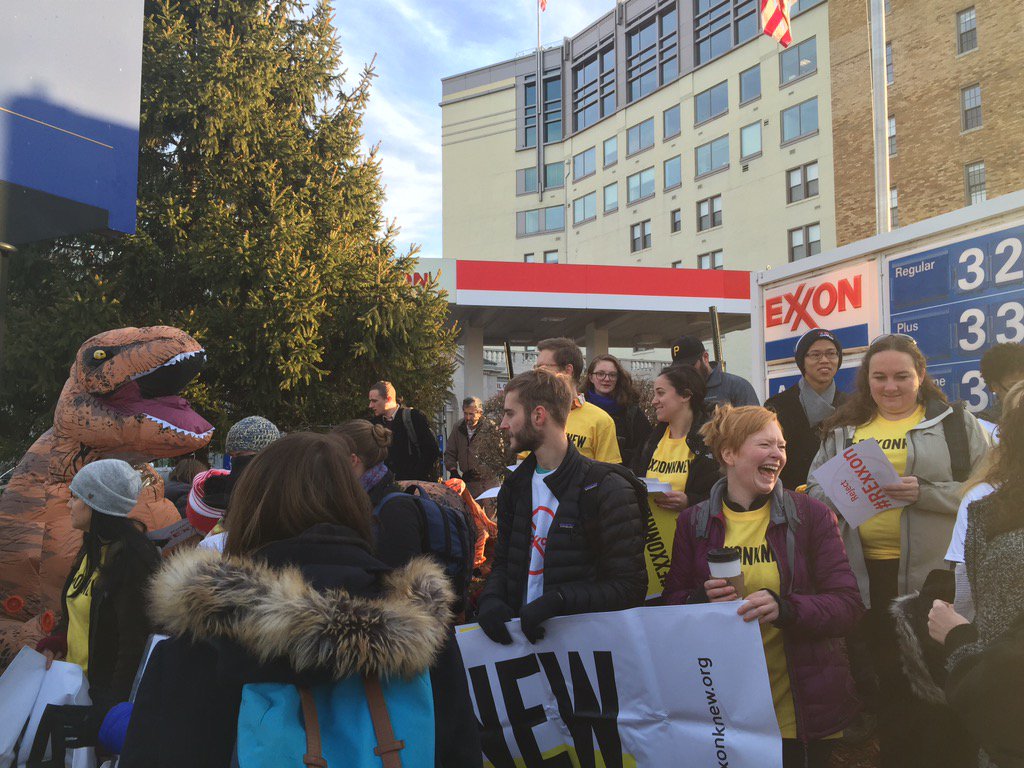 наглядная агитация посвящена Exxon и лично Тиллерсону, который как бы T-Rex