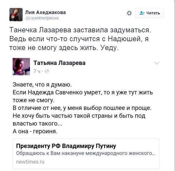 ха ха ха Лазарева же в Лондоне живет, не дождалась когда укры Савченко хлопнут - свалила