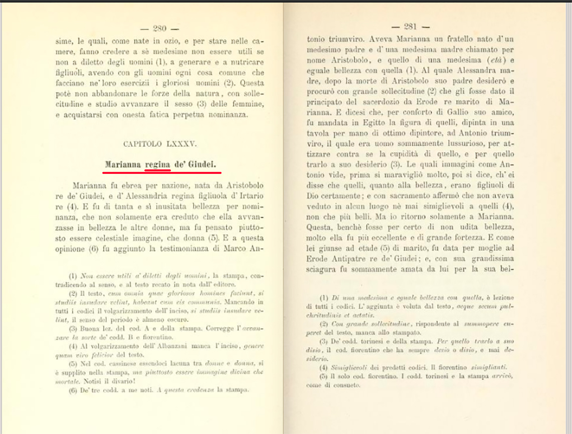В книге Джованни Бокаччо "Известные женщины" Марианна имеет титул regina de' Giudei (королева Иудеи).