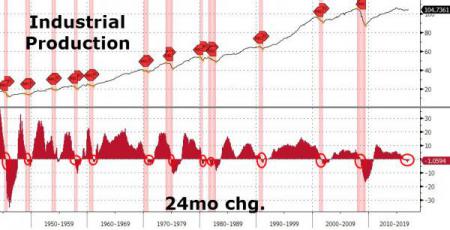 Согласно даже официальному прогнозу ФРС динамика роста ВВП США составит жалкие 0.9%. А если посмотреть на конкретику, то, согласно только что вышедшей статистике, индустриальное производство США сейчас меньше, чем в том же месяце два года назад - чего никогда не наблюдалось в истории США без официального объявления кризиса. Динамика "по сравнению с тем же месяцем два года назад" в минусе уже 29 месяцев подряд.