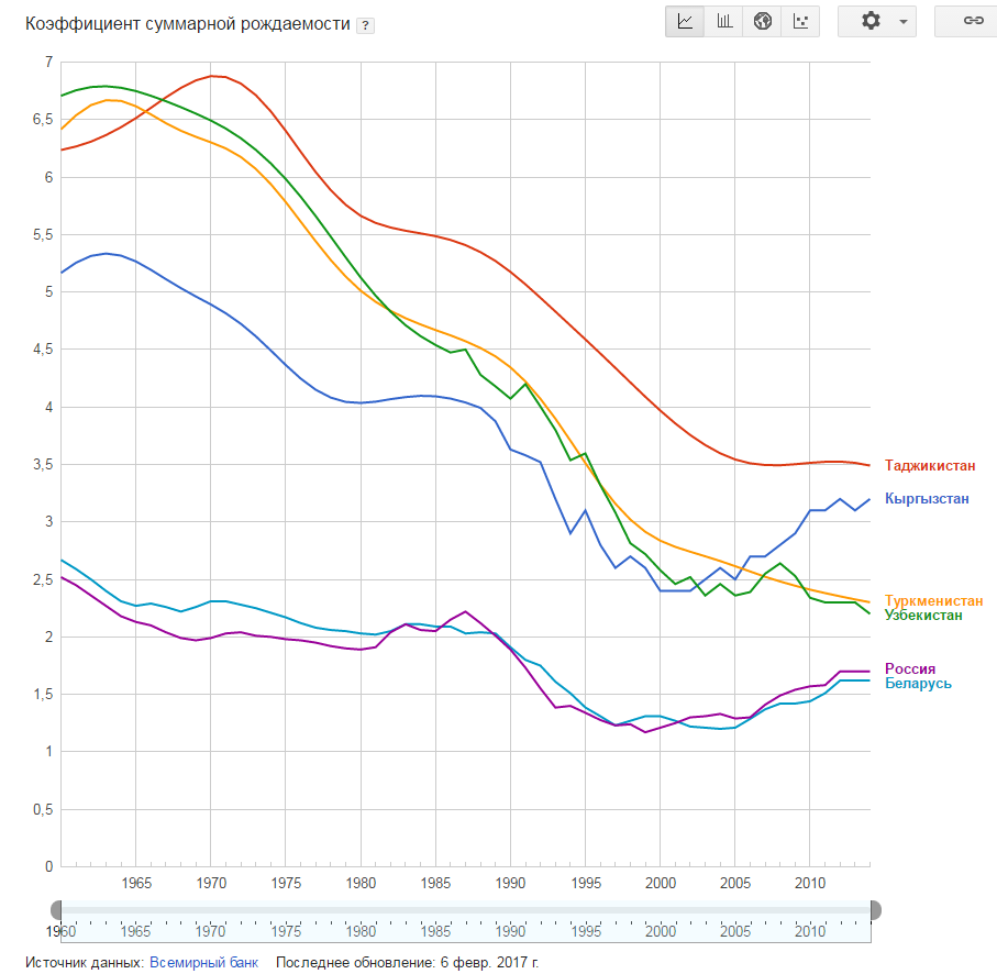 Хороший график. Могло бы и меньше быть, если бы не Путин со своей программой с материнским капиталом...