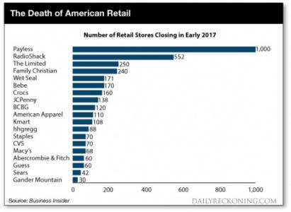 Этот Армагеддон набирает силу, и один лишь недавний иск о банкротстве Payless означает, что только в 2017 году будет закрыто как минимум 3 500 розничных магазинов.