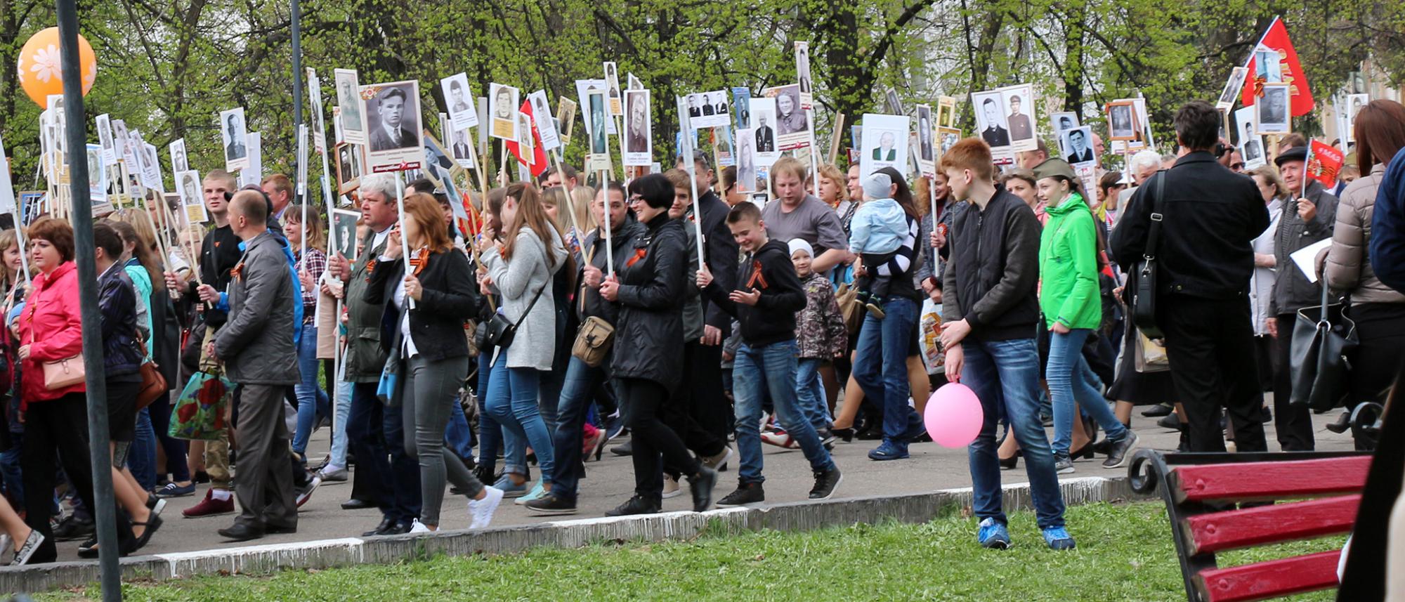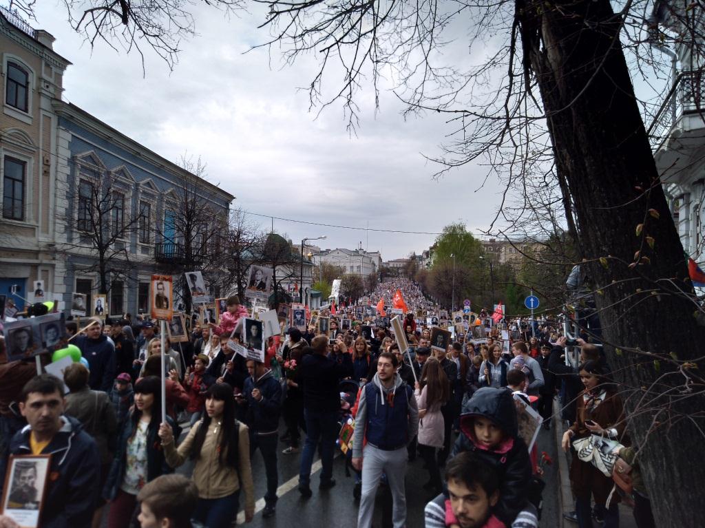 Первое ощущение - у вас что, деревья ещё голые?? У нас (на Алтае) уж месяц как зеленеть начали... А с Бессмертным Полком всё так же - спокойно, тепло и мощно. Такъ!