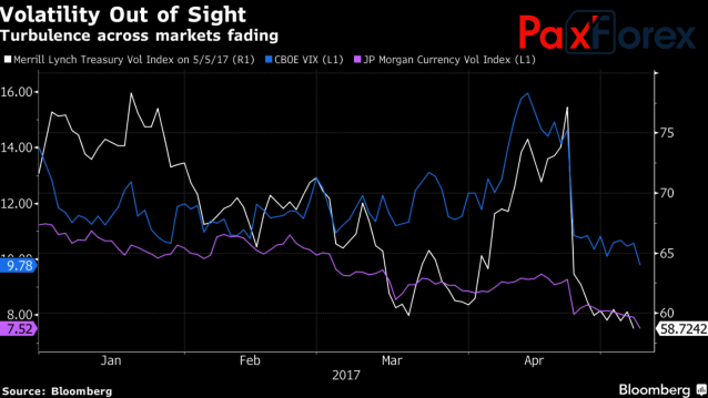 Что касается повторения конус-истерики 2013, то пока рынки не проявляют признаков повышенного беспокойства. VIX упал до минимальной отметки с 1993, индекс волатильности валют G7 от JP Morgan – до самого дна за последние более чем два года. Такой внешний фон является настоящим раем для carry трейдеров.