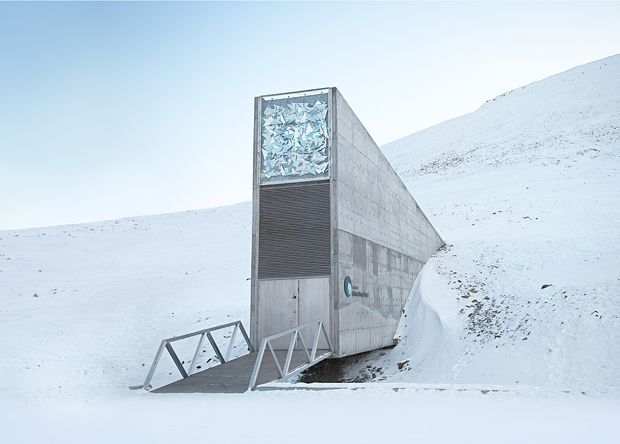 Всемирное семенохранилище построено в 2008 году и предназначено для сохранения запаса семян со всего мира в случае глобальной катастрофы(падение астероида, ядерная война, глобальное потепление и тому подобное). Хранилище расположено на высоте 130 метров над уровнем моря — предполагается, что это предотвратит его затопление из-за цунами или повышения уровня мирового океана из-за таяния ледников. Бункер находится на глубине 120 метров в вечной мерзлоте. С помощью холодильных установок в хранилище поддерживается постоянная температура -18 градусов, однако если холодильные установки выйдут из строя, то вечная мерзлота не даст помещению нагреться выше -3 градусов.