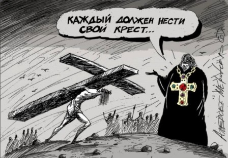 И люди, которые верят этому учению, должны терпеливо нести на себе этот крест во имя спасения на «том свете».
