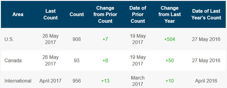 общее количество установок увеличилось на 7 до 908 штук