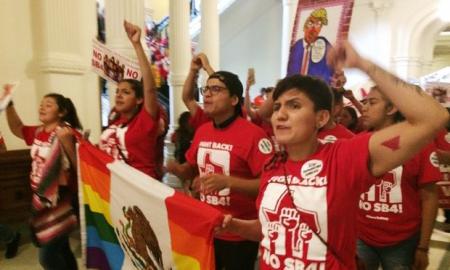 В понедельник в здание законодательного собрания Техаса ворвались протестующие против билля SB4, недавно подписанного губернатором-республиканцем Грегом Эбботтом. Билль обязывает местную полицию соблюдать федеральное иммиграционное законодательство, под страхом тюрьмы или увольнения со службы, и таким образом направлен против "безопасных зон" для нелегальных мигрантов, которые сформировались в тех городах, где местную власть контролируют демократы.