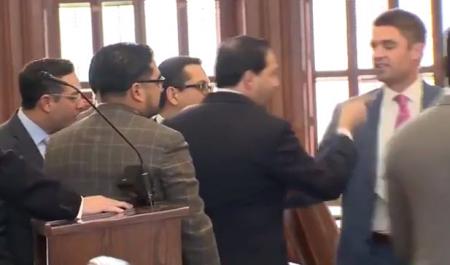 Протестующие в красных футболках с надписью по-испански "Lucha" ("Борьба") скандировали лозунги с балкона и мешали работе заксобрания. В итоге депутат-республиканец Мэтт Ринальди рассудил, что среди них наверняка есть нелегалы, и вызвал иммиграционную полицию (ICE). Когда он порадовал этим коллег, между депутатами всё смешалось, началась перепалка и потасовка. Мэтт Ринальди и депутат-демократ Пончо Неварез в состоянии аффекта публично пообещали прострелить друг другу башку (сейчас они через СМИ выясняют, кто кому первым угрожал).