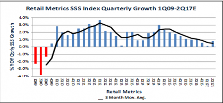 "And second-quarter comparable sales expectations don't look much better, he said. Excluding big-box retailer Wal-Mart, the Street has forecast second-quarter comps to grow a minimal 20 basis points, according to Retail Metrics' survey. These numbers are far from healthy."