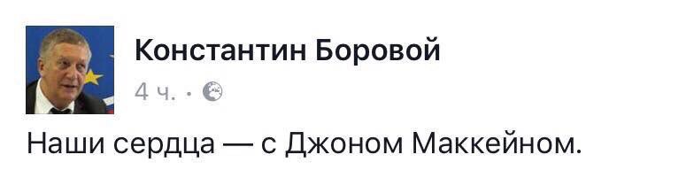 мосКголову пересадят...Раковые клетки - живые и хитрые; они обманывают наш мозг, выделяя какие-то токсины, благодаря которым иммунная система воспринимает больные клетки как "свои, здоровые", поэтому организм не борется с ними. Больные клетки питаются здоровыми и захватывают близлежащее пространство для подкормки. Поэтому рак обнаруживает себя и поддаётся диагностике на 3-4 стадиях, когда уже какой-то орган начинает болеть и уничтожаться. Несмотря на это в России есть и успешно применяются высокотехнологичные способы лечения раковых опухолей, без развода на деньги и часто со 100% излечением. Результат зависит в том числе и от духовной составляющей пациента, его нацеленности на добро, позитивные мысли и дела. У Маккейна с этой компонентой - беда. Скорее всего, лечение ему не поможет, т.к. слишком много желчи и озлобленности в мыслях. Вот что ему плохого сделали Россия и россияне? Ничего. Но он их ненавидит и поносит, пакостит и причиняет зло, обременяя свою карму и лишая мозг возможности программировать себя на саморегуляцию и выздоровление.
