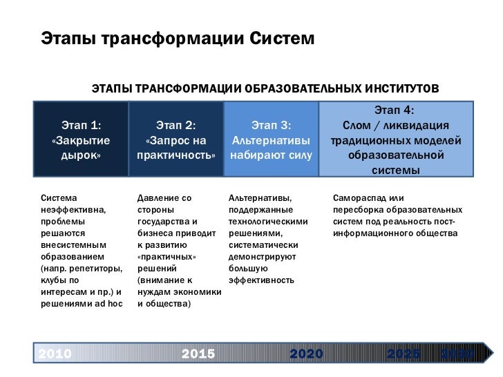 - Переходной зоной является период 2017-2025, когда эффекты изменения глобальных правил игры станут очевидны и в России. Регуляторы образования в России, не учитывая вызовы этой трансформации, по факту готовятся к «прошедшей войне» (2)