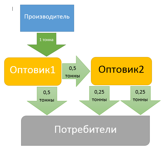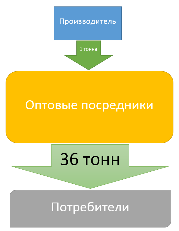 Как видно из схемы, множество посредников занимаются производством подделки и потребитель в реальности получает совсем не тот товар, на который рассчитывал. Такое положение также не мотивирует поставщиков повышать качество товаров, намного выгоднее сидеть на посредническом бизнесе. Если же поставщик хочет гарантировать качество своей продукции для покупателя, то он вынужден специально защищать свою продукцию - делать уникальные бутылки, наклеивать голограммы, что с одной стороны приводит к удорожанию, с другой стороны, судя по статистике, абсолютно не гарантирует качество - в современном мире подделать можно почти всё.