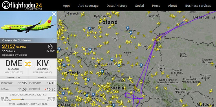 Рейс вылетел из аэропорта Домодедово в 11:53 мск и должен был приземлиться в Кишиневе в 16:30. Как свидетельствует данные портала, пассажирский Boeing 737 совершил несколько кругов, на границе Венгрии и Румынии, но так и не вошел в румынское воздушное пространство.
