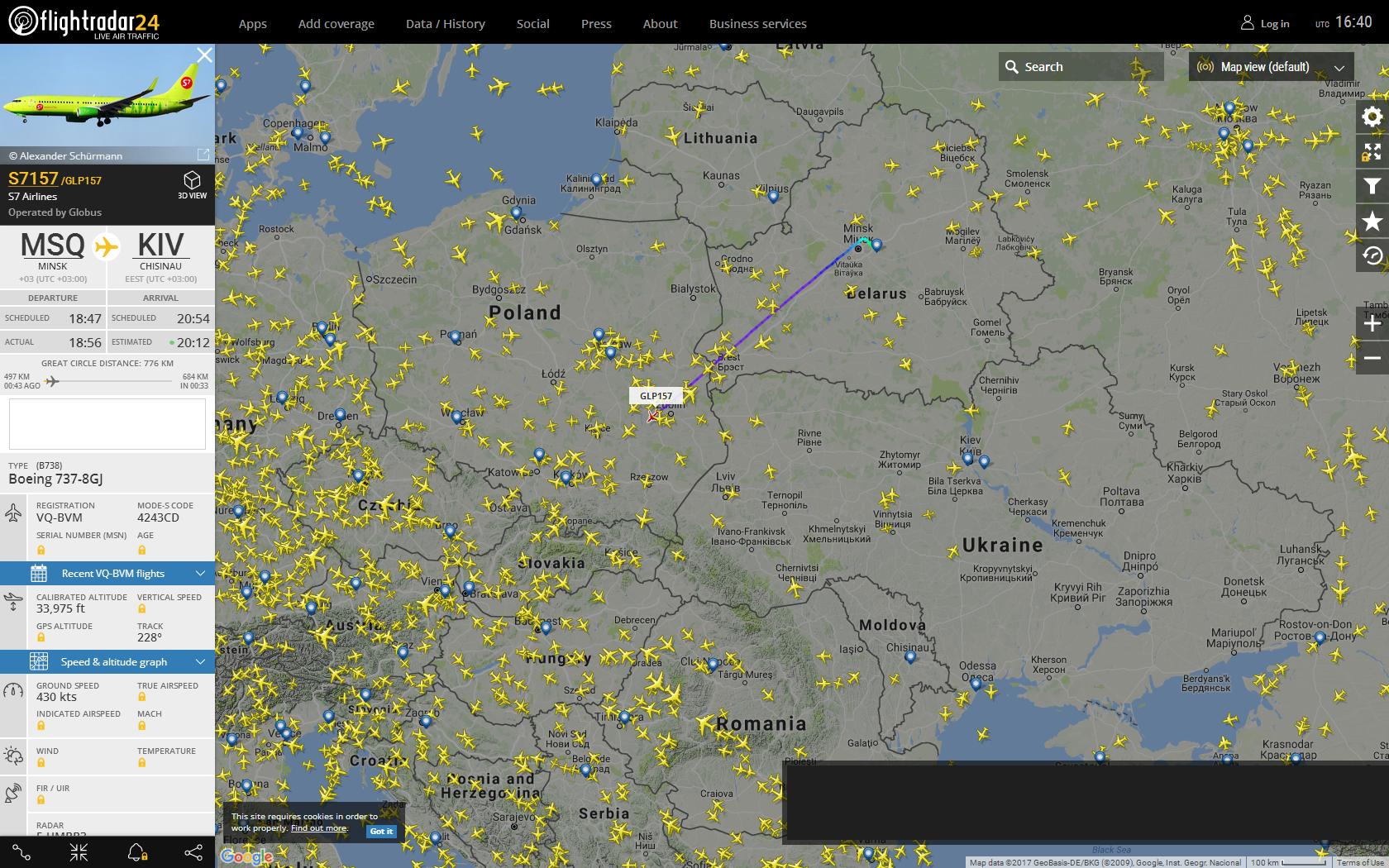 По ходу вылетел из Минска в Кишинёв.