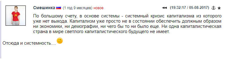 Смешинка, кстати, права. Капитализм и вправду закончился, сейчас идёт его демонтаж силами транснациональных олигархий. Вот только на смену ему идёт совсем не социализм. Рекомендую лекции тов. Фурсова на эту тему, очень познавательно.