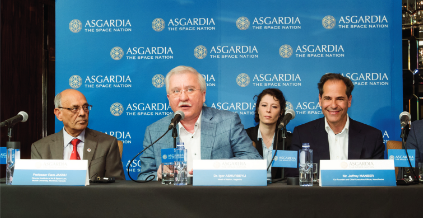 На пресс-конференции в Гонконге: Рам Джаху, директор Института воздушного и космического права Университета Макгилла (Монреаль), Игорь Ашурбейли, глава космического государства Асгардия, Джеффри Манбер, управляющий директор и соучредитель компании NanoRacks
