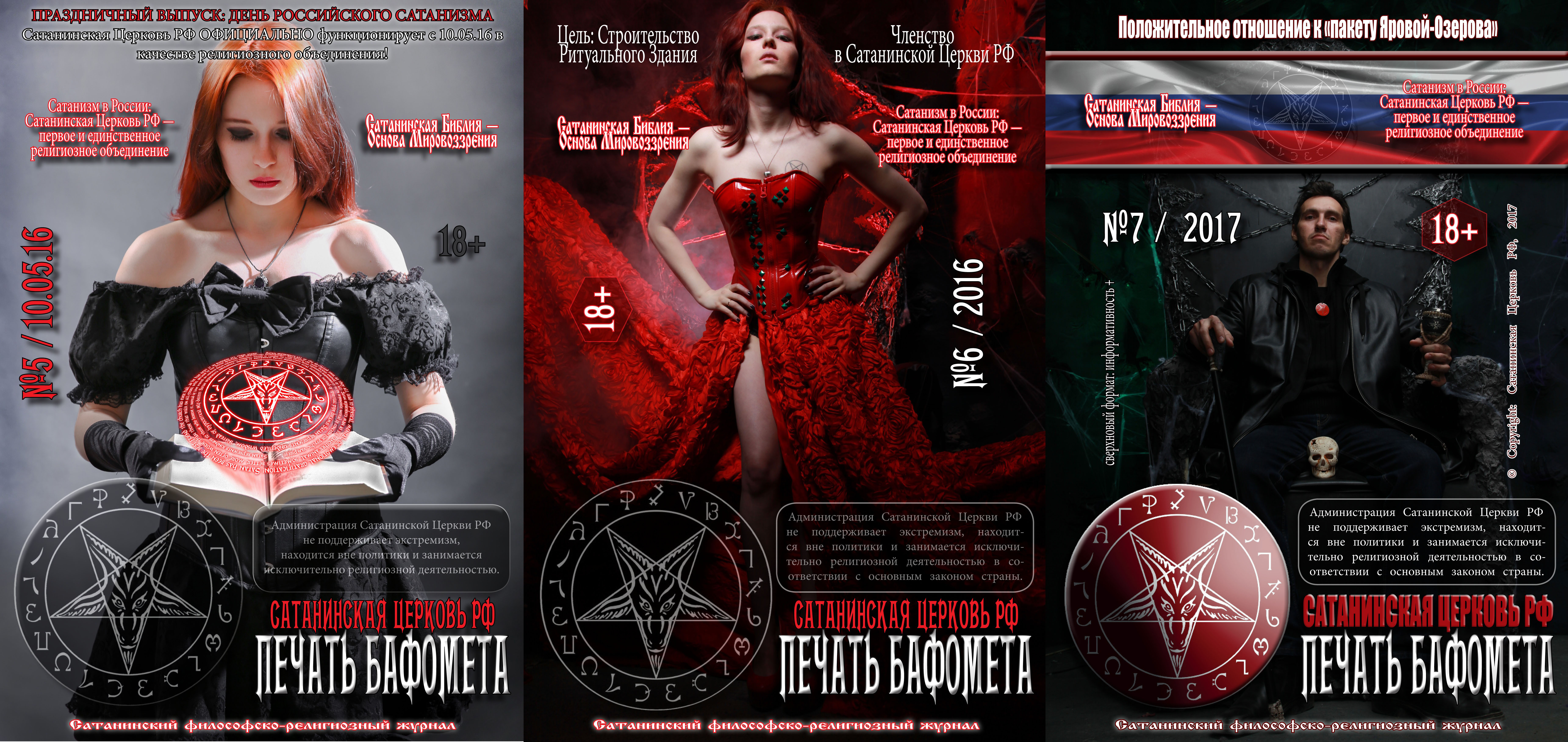 Еще Сатанинская церковь РФ выпускает свои журналы. Это некоторые из обложек издания. |