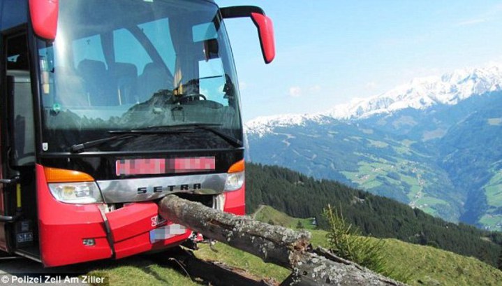 Лишь быстрые действия одного из пассажиров смогли предотвратить падение в пропасть полного туристов автобуса в австрийских Альпах после того, как водитель транспортного средства потерял сознание во время движения.