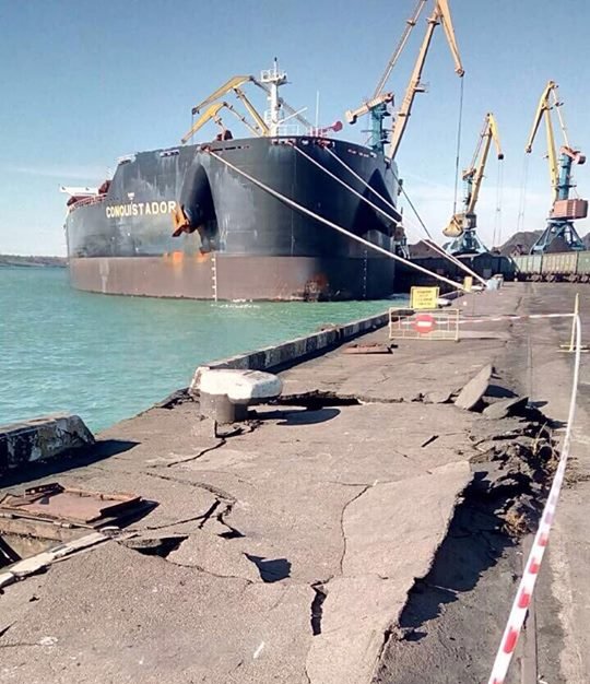 Украинские СМИ это по умолчанию фейк. Длина угольного терминала судя по спутниковой карте 1.56 км. В Одессе такого терминала нет. Почему украинские официальные власти говорят что уголь пришел в Одессу хотя судно разгрузилось в Южном? Ну так у них принято наверное. Где и как произошел инцидент не понятно. И какие повреждения тоже. То что на фото не факт что единственные. Как я понимаю основные разрушения могут оказаться именно подводные. Подождем официальной информации.