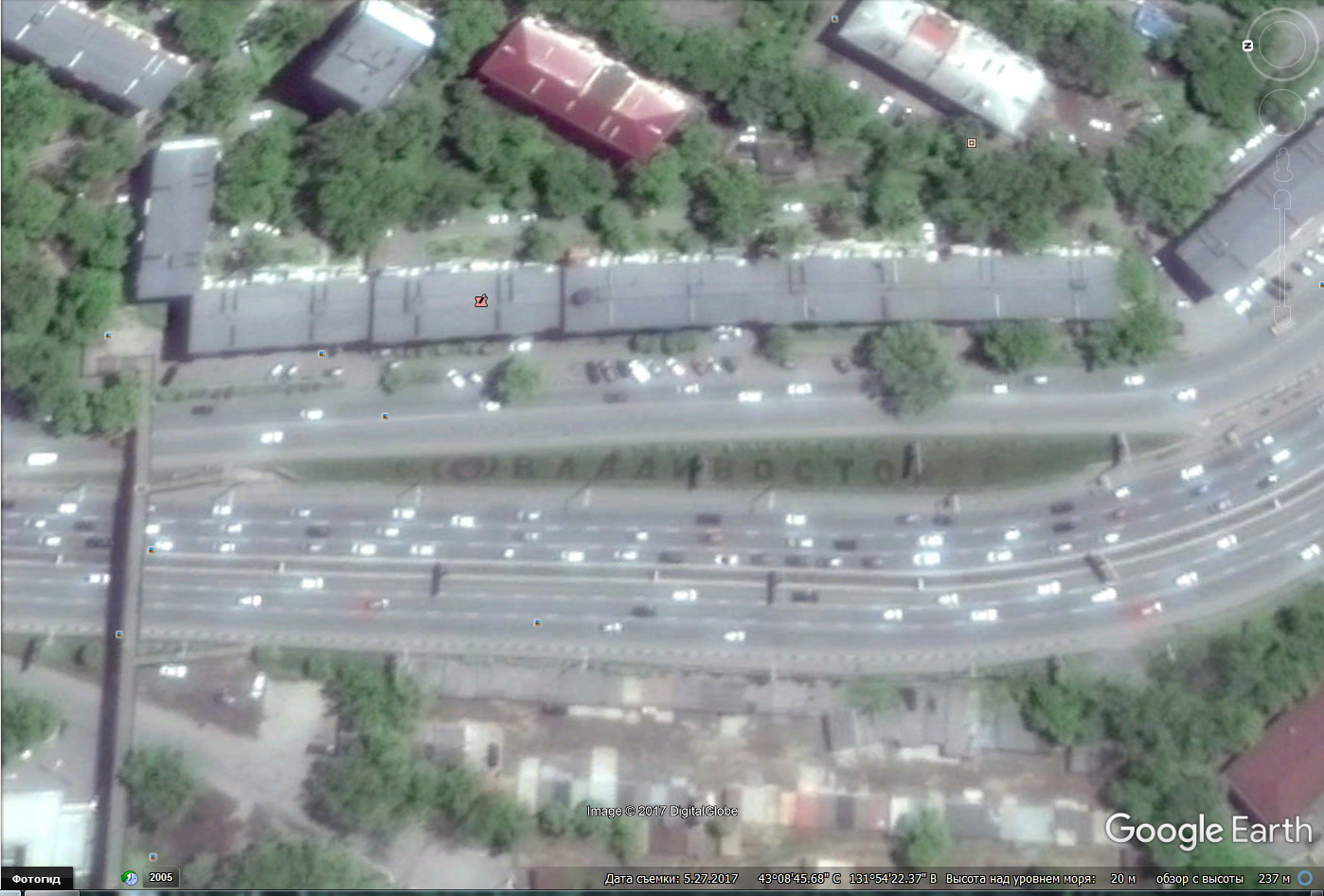 Это надпись из красных цветов на проспекте 100 лет Владивостоку, напротив озера Юность (бывший Чан):
