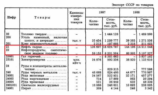 Итого в 1988 году СССР экспортировал свыше 205 млн. т нефти и нефтепродуктов (или 33% от всей нефтедобычи), а не 29 млн. т, как утверждает (пытаясь манипулировать общественным мнением) Кара-Мурза.