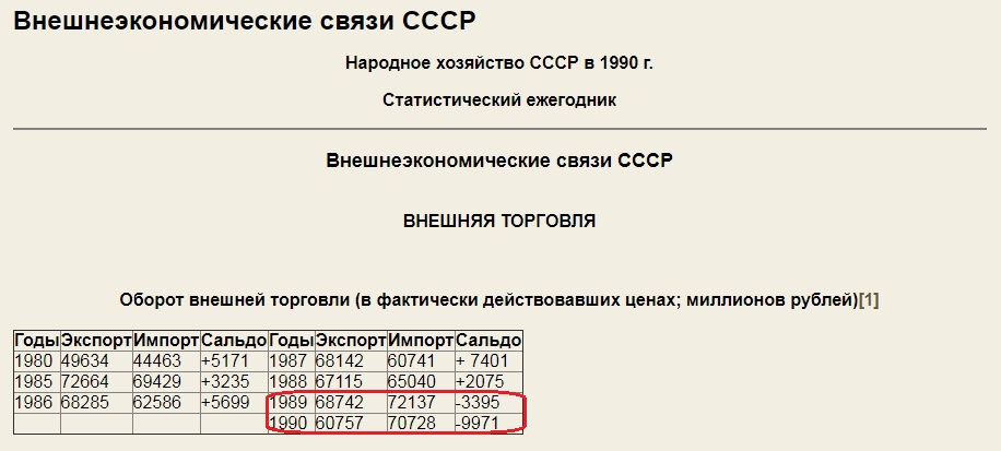 Отрицательное сальдо внешней торговли присутствует только 1989,1990 годах. и нефть тут точно не причем.