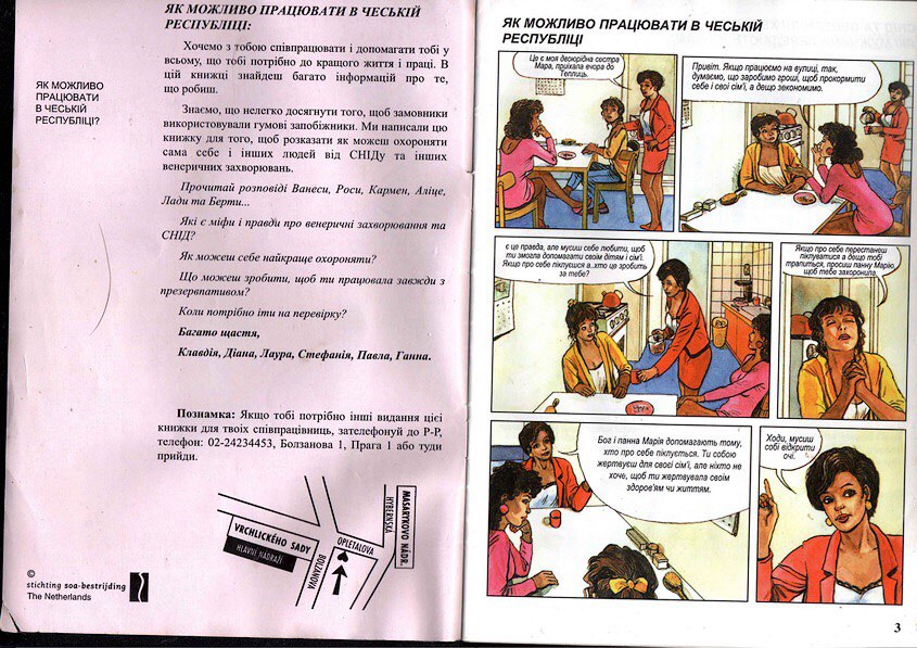 — Если ты занимаешься секс-бизнесом, тогда эта брошюра для тебя, — гласит одна из страниц. — Ты выбрала очень опасную профессию, но если будешь всегда придерживаться этих простых правил, то получишь шанс прожить долгую жизнь,— продолжается напутствие.