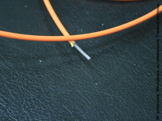 Вот этот «хвостик», упакованный в жёлтую оболочку, и есть, собственно, выходное оптическое полотно – «нерв» лазера: