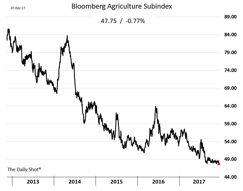 Индекс цен на с/х товары в $ от Bloomberg. Замедлению роста потребительских цен в РФ значительно помогает дефляция на мировых рынках (в добавок)