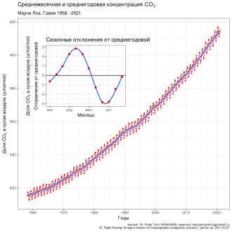 График увеличения СО2 полученный на Гаваях (график Килинга) самый замечательный. Примерно месяц назад я как раз дискутировал по его поводу.