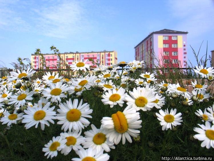 На бесплатном автобусе, кружащем по единственному маршруту, начертано куда более весёлое прозвище — «Город романтиков и ромашек». Ромашки весной пробиваются повсюду, и никакой асфальт им не помеха