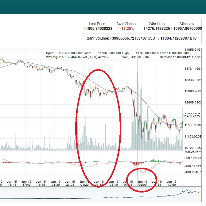Кстати по теме сабжа, полагаю что падение связано со второй волной (она редко бывает, раз в 2 месяца) продажи майнинг оборудования конкретно биткоина "самым большим поставщиком этого железа" - bitmain. Ровно на 9 утра по гринвичу пришлась крайняя волна продаж (первая была в 3 ночи), а железо как раз продают как за битки, так и за доллары по SWIFT, так что это могли быть спекуляции перед продажей, либо народ мог тупо сливать битки на доллары, чтобы как можно больше купить железяк. Сайт лагал, сами продажи пошли в 9:20 где-то.