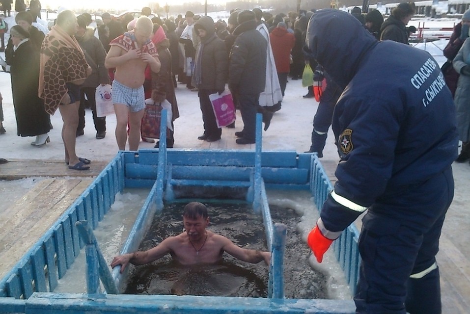 Фоторепортаж: на Крещение сыктывкарцам было жарко в ледяной воде