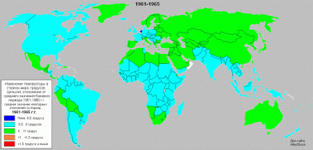 Рисунок 2 – Изменение температуры в странах мира, градусов Цельсия, отклонение от среднего значения базового периода 1951-1980 г.г. (среднее значение ежегодных отклонений за период 1961-1965)