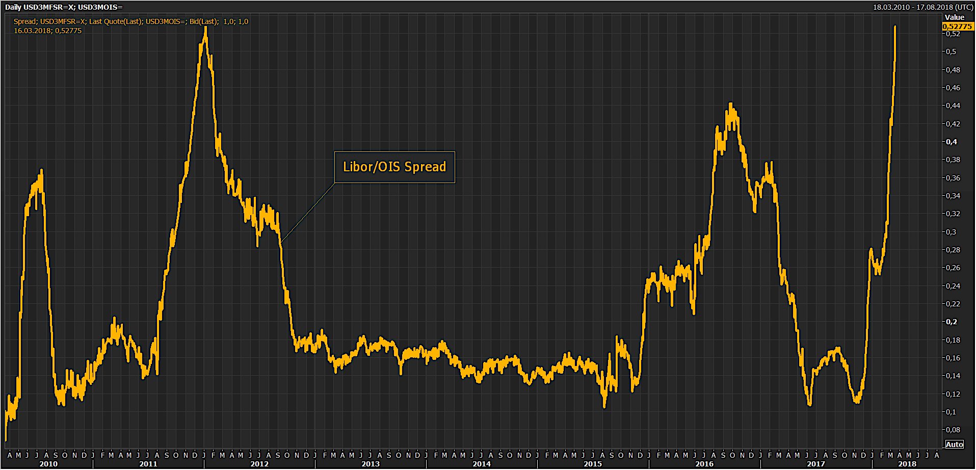 Спекуль один в твиттере негодует из за "libor ois spread". LIBOR-OIS является очень важным индикатором кредитного рынка и показывает премию за кредитный риск. Чем она ниже, тем спокойнее ситуация на межбанковском рынке.