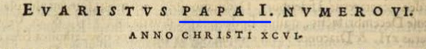 "Эварист папа 1, по общему счёту пап 6, год от Христа 96"