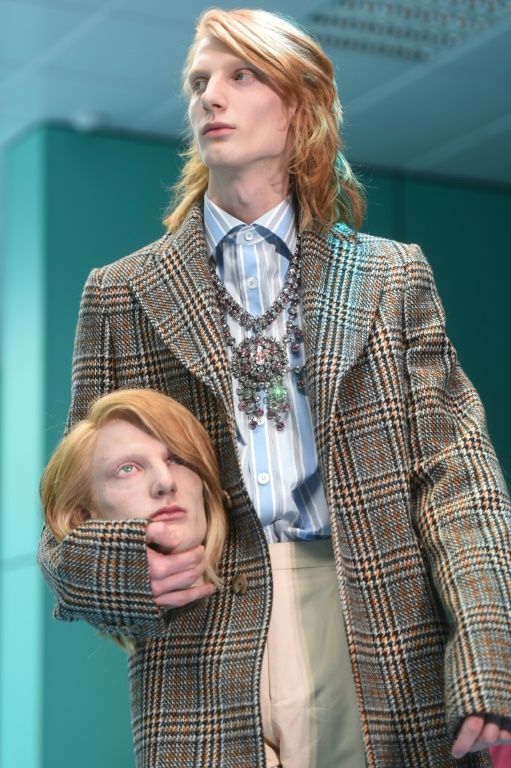 На открытии Недели моды в Милане, Алессандро Микеле, креативный директор дома Гуччи, порадовал мощной метафорой. На подиум он выпустил моделей мужского и женского пола (или андрогинов?), держащими в руках муляжи их же собственных отрезанных голов. Зал для показа был стилизован под хирургическую операционную, а приглашение было оформлено как оранжевый таймер, который отсчитывал секунды до начала мероприятия.