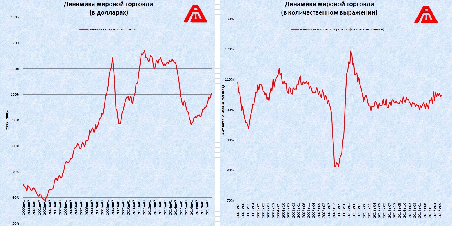 г) графики мировой торговли в денежном и количественном выражении: