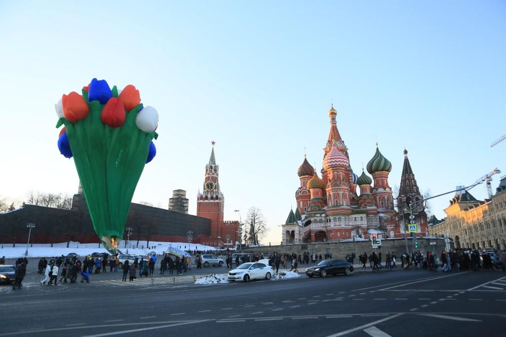 Также грандиозный флешмоб для россиянок устроили и в столице. На Васильевском спуске в небо был запущен гигантский букет тюльпанов. Благодаря хорошей, солнечной погоде получилось особо эффектно. Мэр Москвы Сергей Собянин также лично поздравил женщин с их праздником.