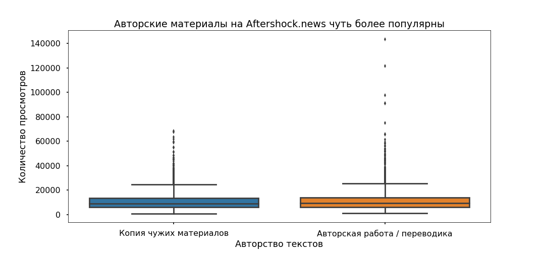 На сайте размещают не только авторский контент (56% материалов, у которых есть метка «Авторство»), но и перепечатки с других ресурсов.
