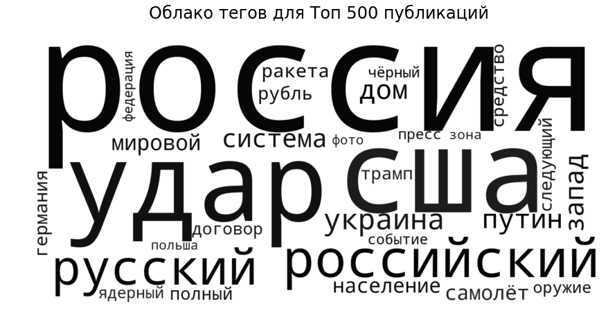 Тематика публикаций определялась по группам тегов и категорий, то есть по их наиболее частым сочетаниям под постами (служебные категории «Лидеры просмотров» и «Лидеры обсуждений» из топа убраны).
