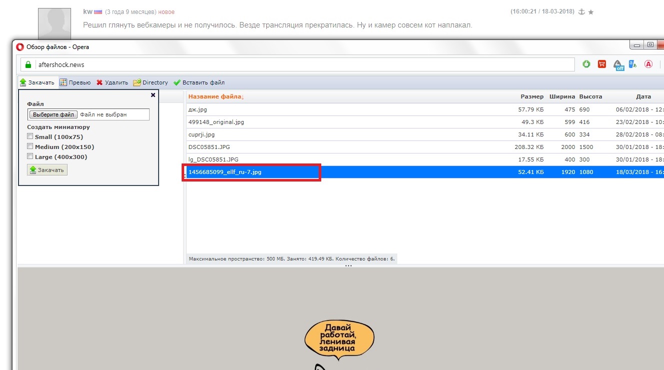 Тыркаете Выбор на сервере,открывается окно обзора на Вашем компьютере,выбираете нужный файл тыркаете стрелочку зеленую Закачать,справа появится нужный файл выделенный синим,щелкаете 2 раза мышой,жмете на зеленую кнопку ОК,файл загружается на АШ .Надеюсь понятно объяснила