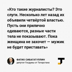 И отношение Госдумы, лишившей аккредитации журналистов протестующих СМИ (в ответ на отказ наказать похотливого депутата Слуцкого), и высказывание Сибагатуллина, справедливо возмутило журналистов.