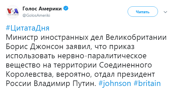 Я понимаю так, что истерика не столько из-за какого то Скрипаля, неважно, кто он на самом деле,а в применении боевого ОВ на британской территории. По крайней мере так пытаются представить дело островитяне.