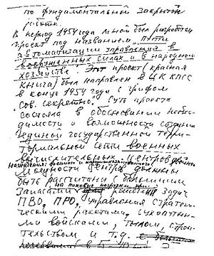 Рукопись Анатолия Китова 1959 года относительно его проекта «Красная книга» — единой системы управления Народным хозяйством СССР и Вооружёнными силами страны.
