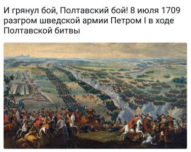 8 июля 1709 г. 308 лет назад Русская армия Петра I разбила шведскую армию короля Карла XII в Полтавском сражении.