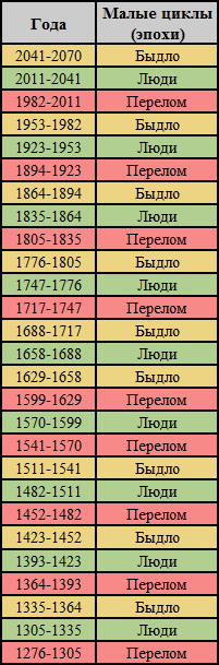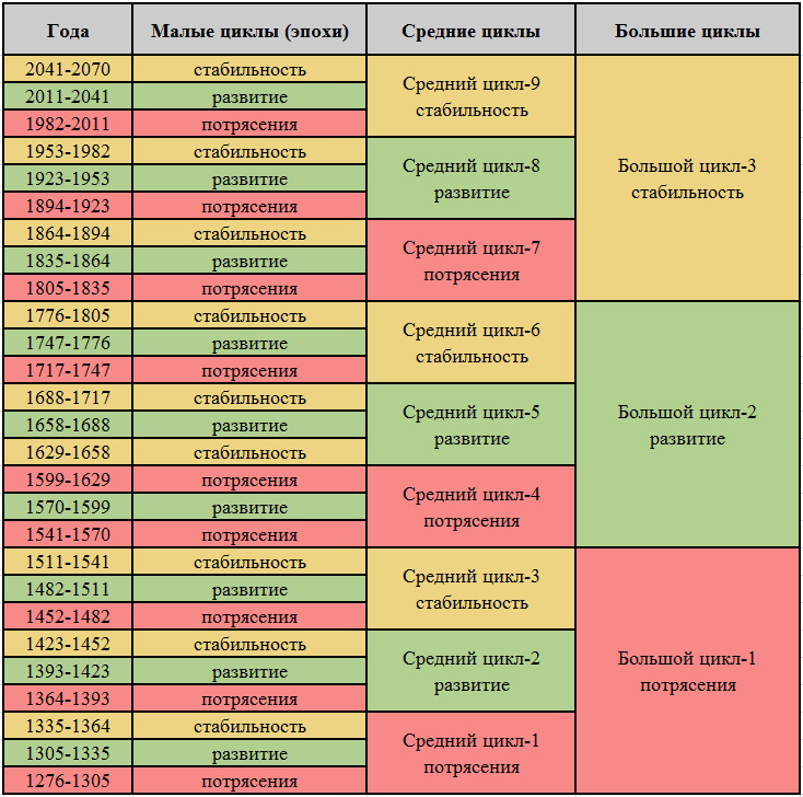 Итак, обновленная таблица исторических циклов (Вам было обещано сломать мозг - терпите)